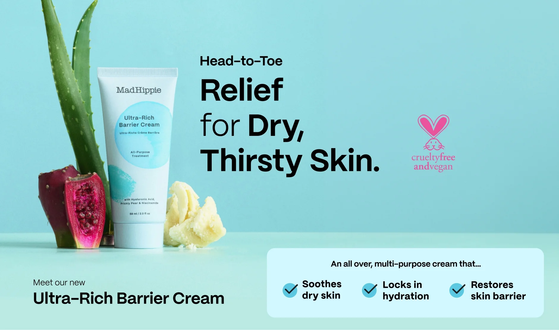 Deze ultra-rijke hydraterende crème verzorgt je huid van top tot teen, verrijkt met hyaluronzuur, plantaardige lanoline, ceramiden en cactusvijg om zelfs de droogste huid diep te hydrateren en te kalmeren. Verrijkt met vitamine C, niacinamide en rode framboos om te beschermen, voeden en verhelderen.