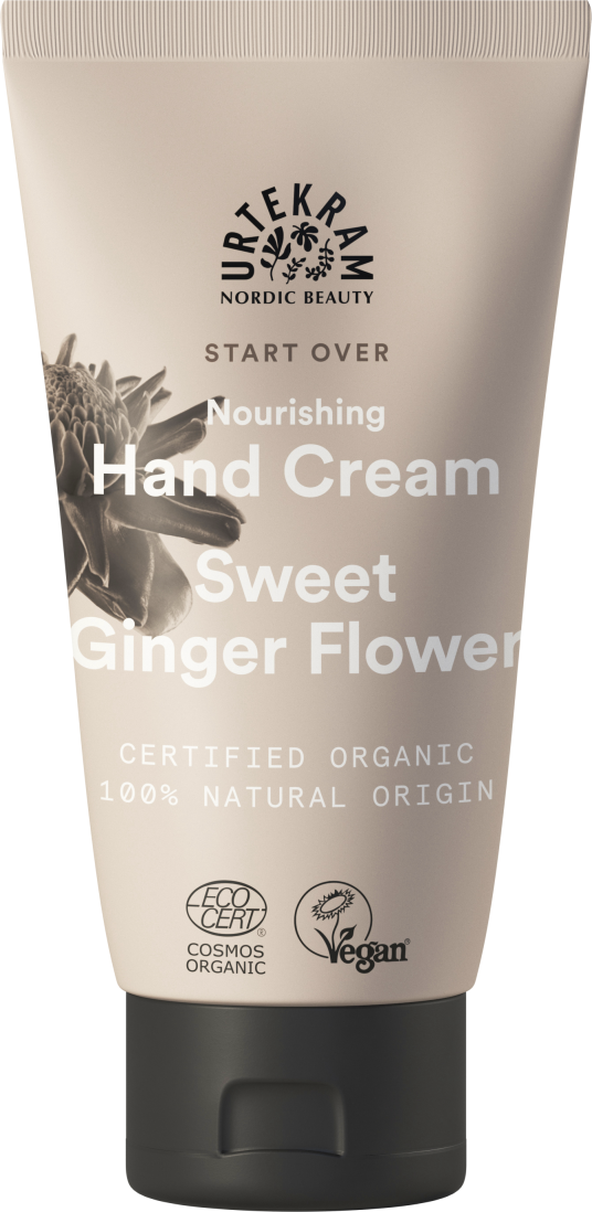 De Start Over Hand Cream Sweet Ginger Flower van Urtekram is een heerlijk voedende en snel intrekkende handcrème. Verzorgende, hydraterende ingrediënten, waaronder shea butter, aloë vera en zoete amandelolie verwennen je huid en zorgen ervoor dat je handen langdurig gehydrateerd blijven. Met de vitaliserende, verfrissende bloemige geur van zoete gemberbloem.