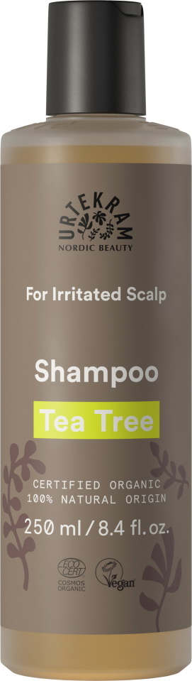 De Tea Tree Shampoo Irritated Scalp van Urtekram voedt je haar en kalmeert je hoofdhuid. Milde tensiden zorgen voor een zachte reiniging van haar en hoofdhuid zonder te irriteren of uit te drogen. Biologische aloë vera hydrateert en herstelt en zorgt voor zacht, glanzend haar. Glycerine hydrateert haar en hoofdhuid. Biologische tea tree olie zuivert de hoofdhuid en werkt antibacterieel, antiviraal en schimmeldodend. Biologische lavendelolie werkt kalmerend en zorgt voor een gezonde hoofdhuid.