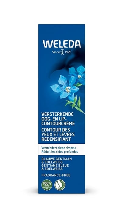 Verzachtende en kalmerende formule die de 50+ huid zichtbaar verstevigt. Het natuurlijke Collagen+ Complex met biologische blauwe gentiaan, biologische edelweiss en Centella Asiatica verhoogt het collageengehalte van de huid. De parfumvrije crème vermindert diepe rimpels, donkere kringen, wallen. Verbetert de oog- en lipcontouren en revitaliseert. Het ooggebied ziet er gladder en stralender uit.
