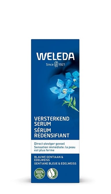 Zeer effectieve celvernieuwende formule voor de 50+ huid met drievoudig effect: verstevigt, hydrateert en voedt onmiddellijk. Het natuurlijke Collagen+ Complex met biologische blauwe gentiaan, biologische edelweiss en Centella Asiatica verhoogt het collageengehalte van de huid. Dit serum vermindert diepe rimpels, verbetert de gezichtscontouren en zorgt voor een egale en heldere teint.
