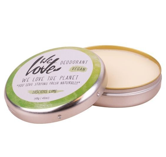 De Deodorant Luscious Lime is een heerlijk geurende deodorant uit de speciale vegan lijn van We Love The Planet. Deze deodorant bestaat voor 100% uit natuurlijke ingrediënten, waardoor deze deo beter is voor je lichaam en de planeet! De basis bestaat uit o.a. kokosolie, was van de wasgagel (Myrica bes), baking soda en maiszetmeelpoeder. De natuurlijke ingrediënten werkten verzachtend en hydraterend. De ontgeurende werking is afkomstig van zuiveringszout (baking soda) dat op natuurlijke wijze geurtjes neutraliseert. De zachte crème wordt snel opgenomen door je huid en verstopt de poriën niet. De Deodorant Luscious Lime heeft een luxe geur van limoen, mandarijn en bergamot in de meest fantastische menging!