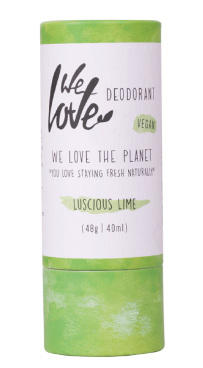 De Deodorant Stick Luscious Lime van We Love The Planet is een natuurlijke crèmedeodorant in praktische stick-vorm. Deze deodorant bestaat voor 100% uit natuurlijke ingrediënten, waardoor deze deo beter is voor je lichaam en de planeet! De combinatie van onder andere kokosolie, baking soda en maiszetmeelpoeder maken de deodorant goed smeerbaar en je huid fluweel zacht. De ontgeurende werking komt door het zuiveringszout (baking soda), dat op natuurlijke wijze geurtjes neutraliseert en antibacteriële eigenschappen heeft. De zachte crème wordt snel opgenomen door je huid en verstopt de poriën niet. De heeft een luxe geur van limoen, mandarijn en bergamot in de meest fantastische menging! De Deodorant Luscious Lime is vegan.