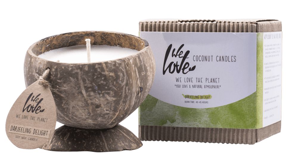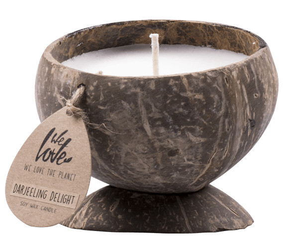 De kokosnootkaars Darjeeling Delight van We Love The Planet is een natuurlijke kokosnootkaars, gemaakt van 100% sojawas. Sojawas bevat geen chemicaliën en is milieuvriendelijk en biologisch afbreekbaar. Daarnaast brandt deze sojawaskaars ook nog eens gemiddeld twee keer zo lang als een andere kaars, namelijk 40 tot 45 uur. De kokosnoot wordt geleverd met bijbehorende standaard, maar je kunt de kokosnoot ook laten drijven in het water. Doordat de kokosnoot puur natuur is, is elk exemplaar anders.