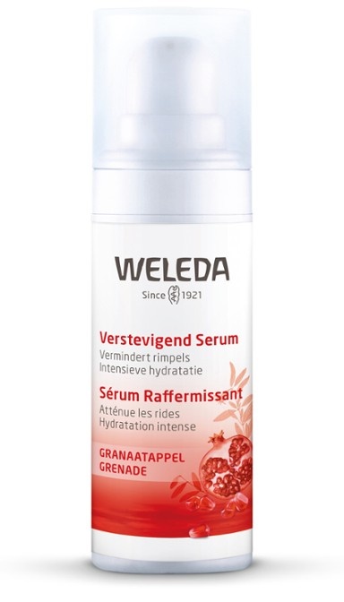 Het Granaatappel Verstevigend Serum van Weleda stimuleert de celvernieuwing en zorgt voor directe intensieve hydratatie. Het geeft de rijpere huid een echte energie-boost en zorgt voor een zachtere en gladdere huid. Aloë vera sap hydrateert intensief en werkt ontstekingsremmend, geneeskrachtig en verzachtend. Granaatappel is rijk aan antioxidanten en stimuleert de huidregeneratie. Parelgierst werkt regenererend en zorgt voor een soepele, gehydrateerde huid. Extract van sleedoornloten bevordert de vochthuishouding en helpt blokkades en zwellingen voorkomen. Geschikt voor veganisten.