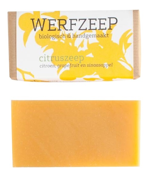 De biologische citruszeep van Werfzeep is een zonnige zeep, vol citrusoliën. De citrusoliën zijn koudgeperst uit de schil van de vruchten. De geurmix van citroen, grapefruit, sinaasappel, limoen en bergamot met een vleugje citroengras creëert een montere, verfrissende geur. De kleur van de zeep is afkomstig van annattozaadjes.