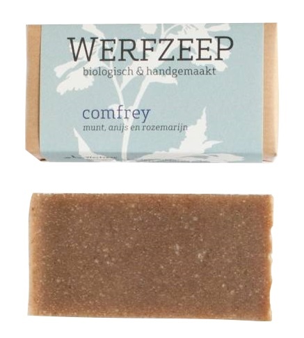 De biologische comfrey zeep van Werfzeep bevat gemalen smeerwortel en smeerwortelmaceraat. Smeerwortel is wondhelend en verzacht de huid. De opwekkende geur van pepermunt, den, steranijs, eucalyptus en rozemarijn maakt het hoofd helder en werkt zuiverend. Bij kort haar ook geschikt als shampoozeep.