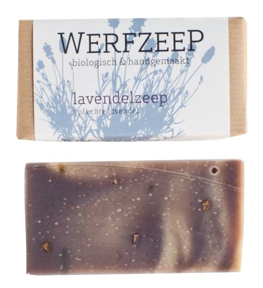 De biologische lavendelzeep van Werfzeep heeft een heerlijke lavendelgeur. De geur is volledig afkomstig van etherische lavendula angustifolia olie. Deze klassieke lavendel groeit van nature op Zuid-Europese droge en kalkrijke grond en heeft meer frisheid dan de zoetere gecultiveerde lavandin. De zeep is verrijkt met verzorgende arganolie. De lavendelbloemen die op het laatste moment door de zeep zijn geroerd komen uit de eigen zeepkruidentuin van Werfzeep. Lavendel werkt diep reinigend en antiseptisch, het verlicht pijn en ondersteunt het herstel van de huid. Het reinigt lichaam en geest en werkt zeer ontspannend.