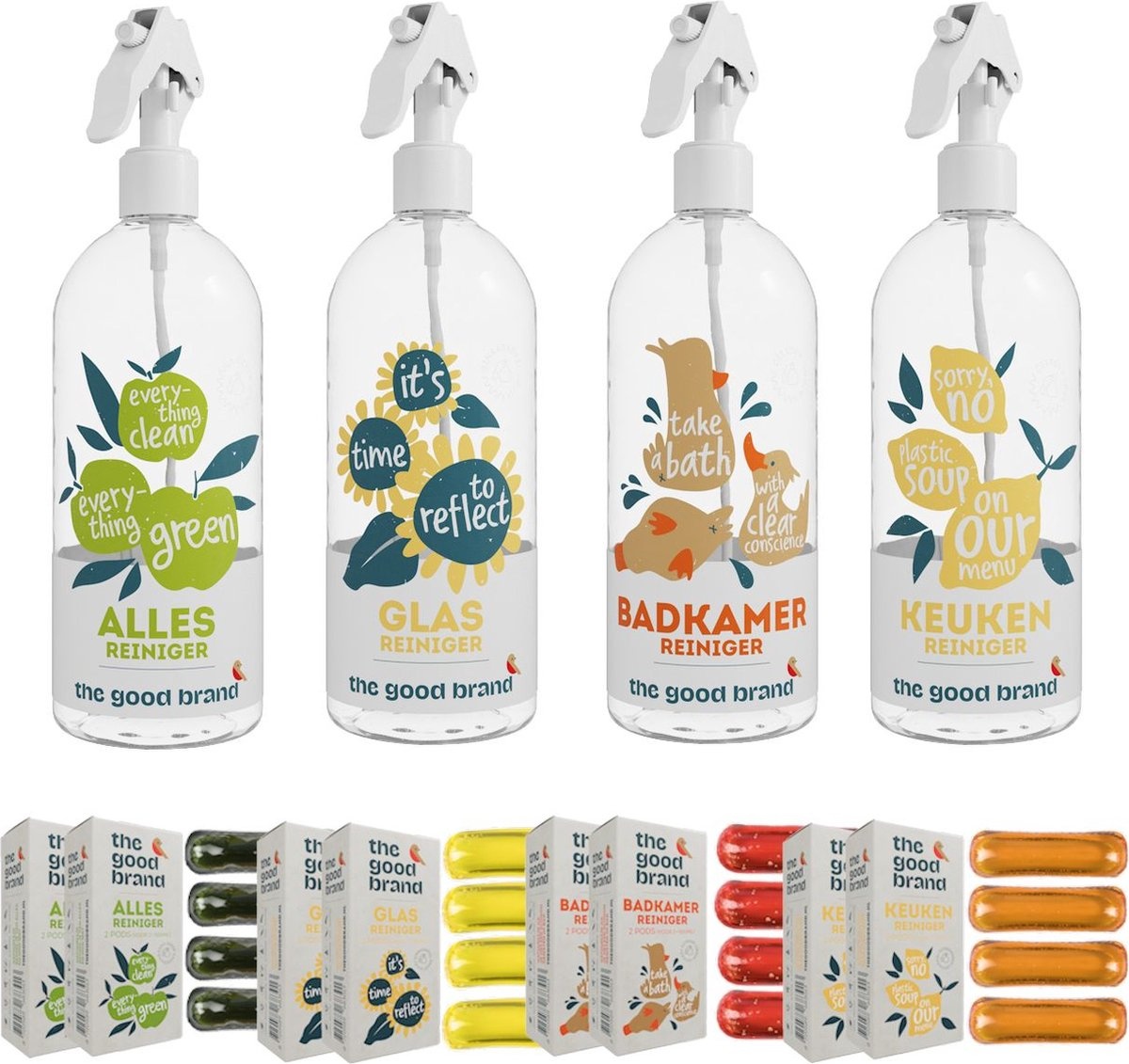 • The Good Brand XL Voordeel Schoonmaakpakket - 4 Flessen met pods + 8 x 2 Refill Pods (20 x 500ml)