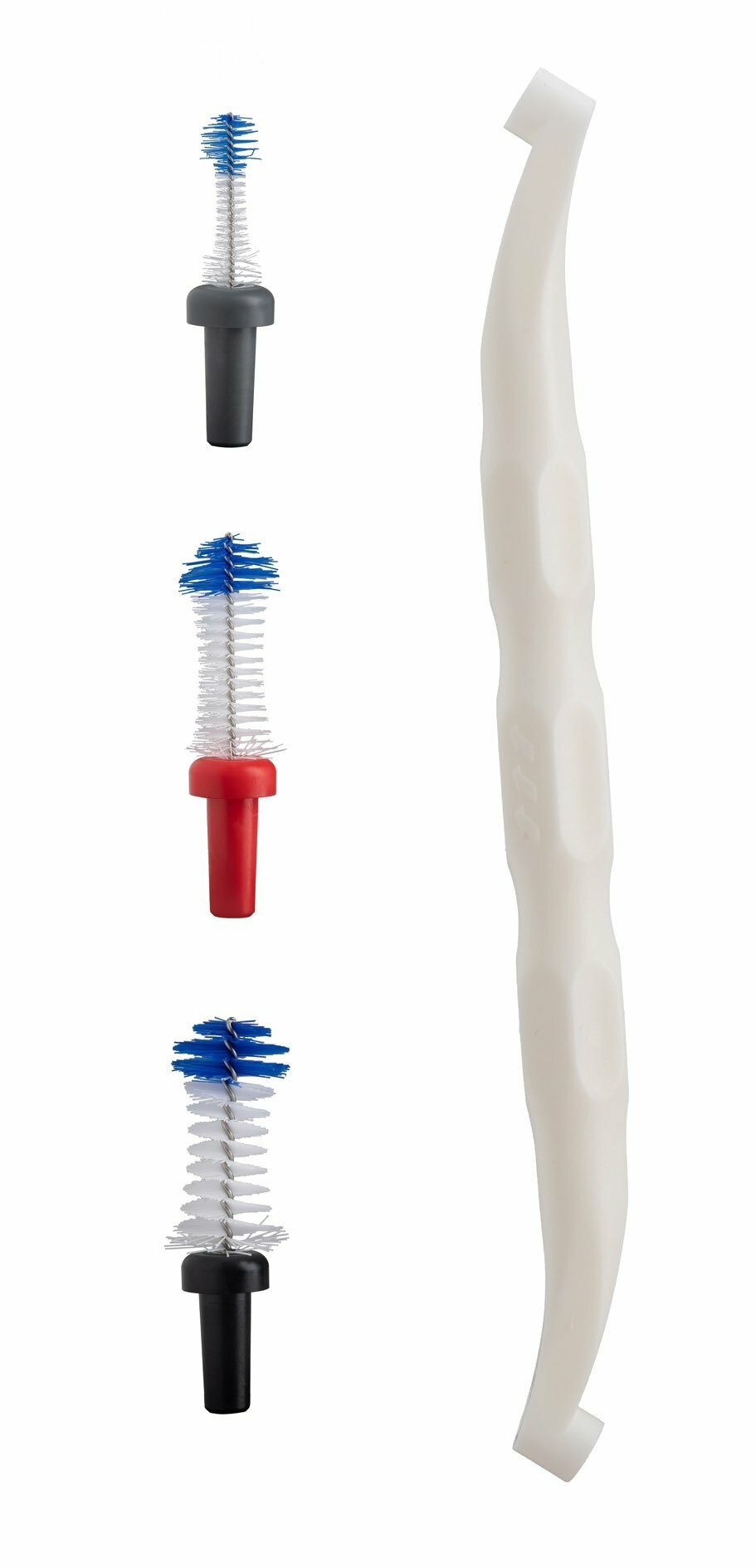 Steek het borsteltje recht in de ruimte tussen de tanden. Als er een lichte weerstand is, breng het borsteltje dan recht aan, beweeg zachtjes maar forceer het nooit. Reinig indien mogelijk elke interdentale ruimte twee keer. Spoel het borsteltje regelmatig uit. Na gebruik goed laten drogen.