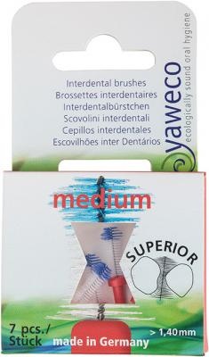 Het Circum® Interdentale Borstels van Yaweco is een navulling voor het Circum® Interdentale Borstels Starter Kit. De borsteltjes zijn er in de maten klein (>0,8 mm), medium (>1,4mm) en groot (>2,3 mm). Geschikt bij natuurlijke tanden, kunstgebitten, implantaten, kronen, bruggen en beugels. De borsteltjes zijn zo klein mogelijk gemaakt, waardoor er weinig afval is. Deze navulverpakking bevat 7 borsteltjes.